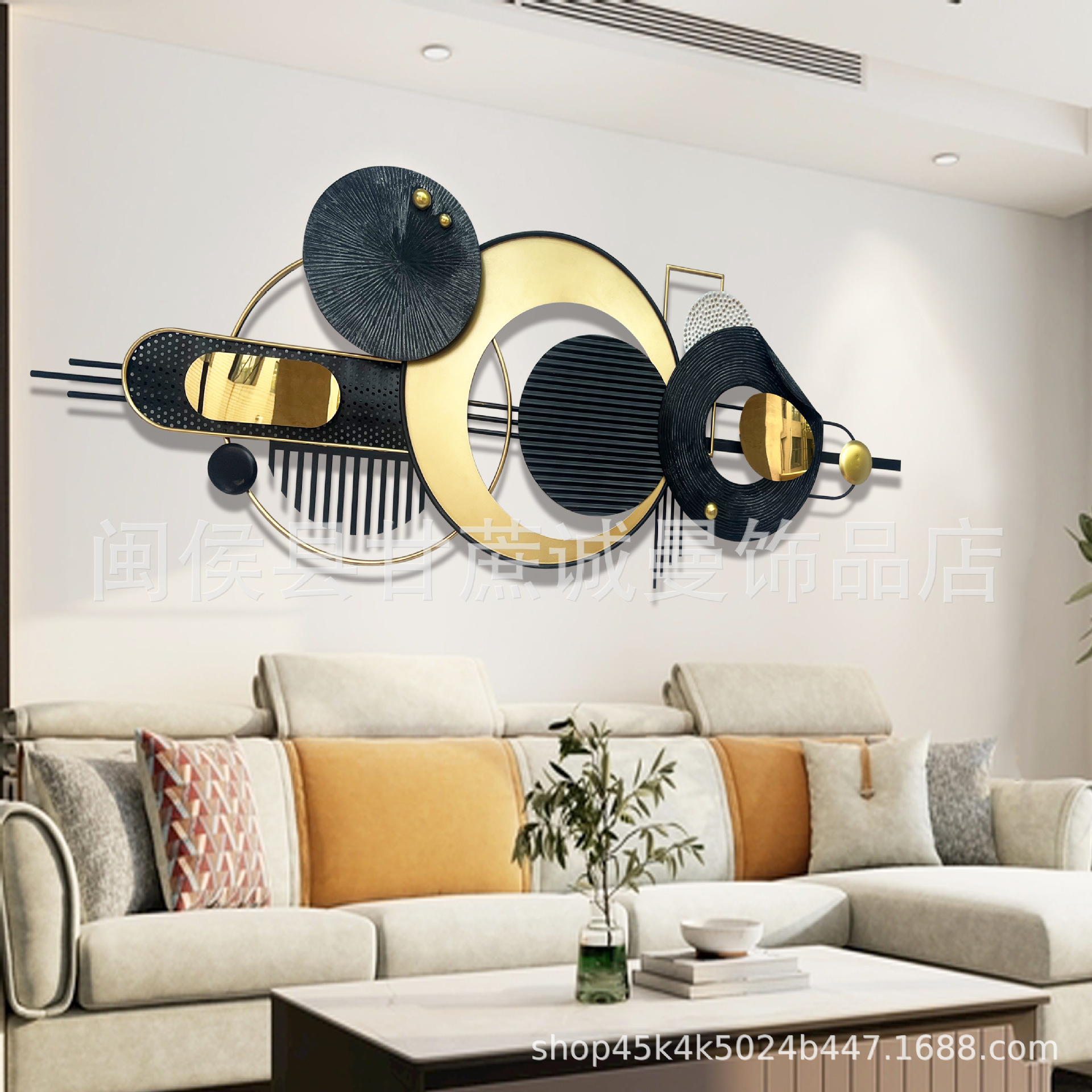 現代のシンプルな金属の壁の装飾品のリビングルームのソファーの背景の壁のペンダントの壁の装飾