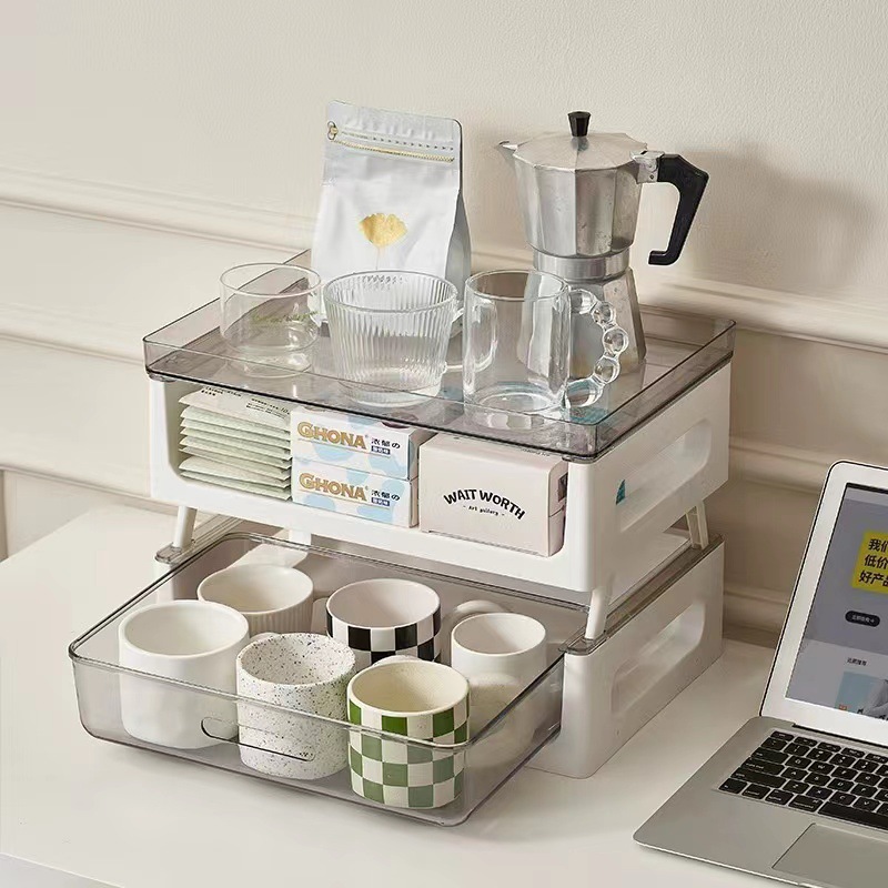 多層雑物置棚デスクトップins風帯引き出し防塵収納整理物置棚コップ収納棚