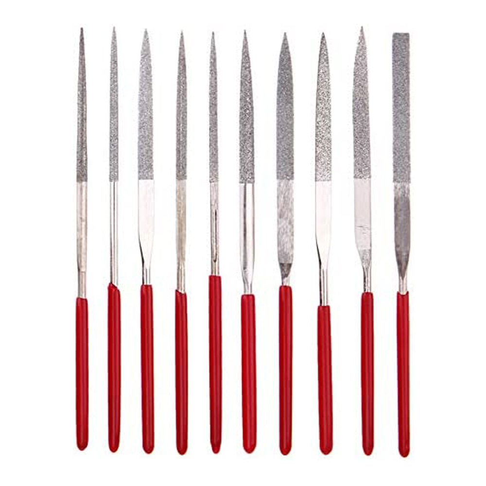 3*140mm 10本入赤柄ヤスリ金属丸針ヤスリ三角角型平角ファインヤスリ工具