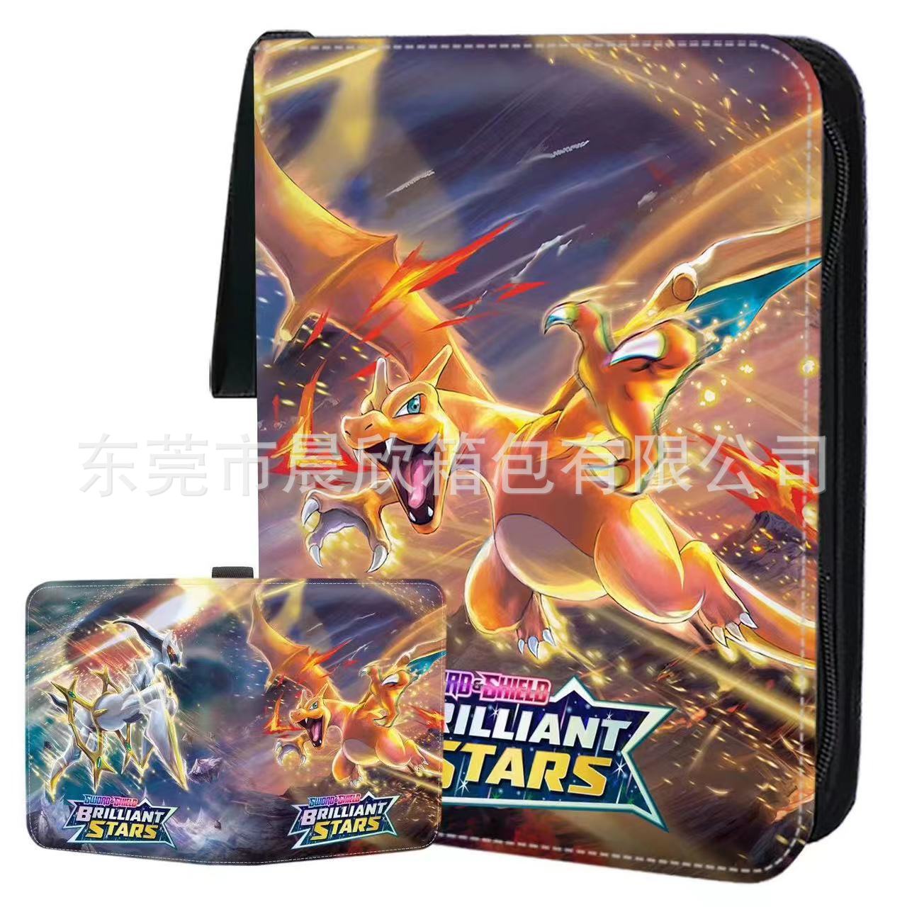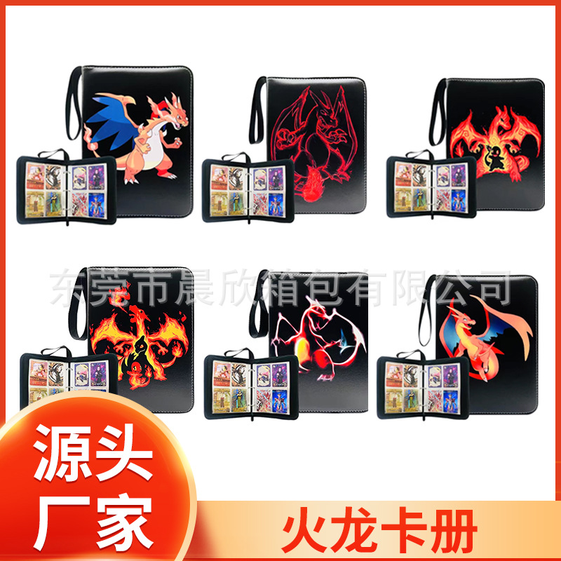 クロスボーダー直供四宮格宝可夢カード冊九宮ポケモン火龍pu皮質ファスナー収納収納バッグ