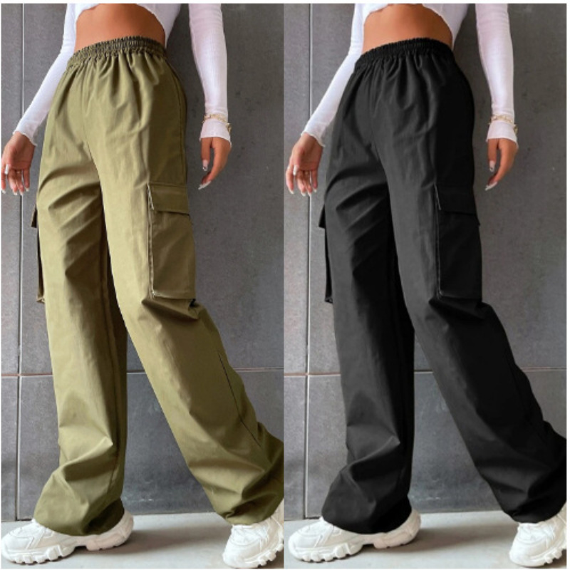 国境を越えた対外貿易スポット2024欧米ファッション女装春夏起爆純色が腰を緩めてポケットのズボンを覆った