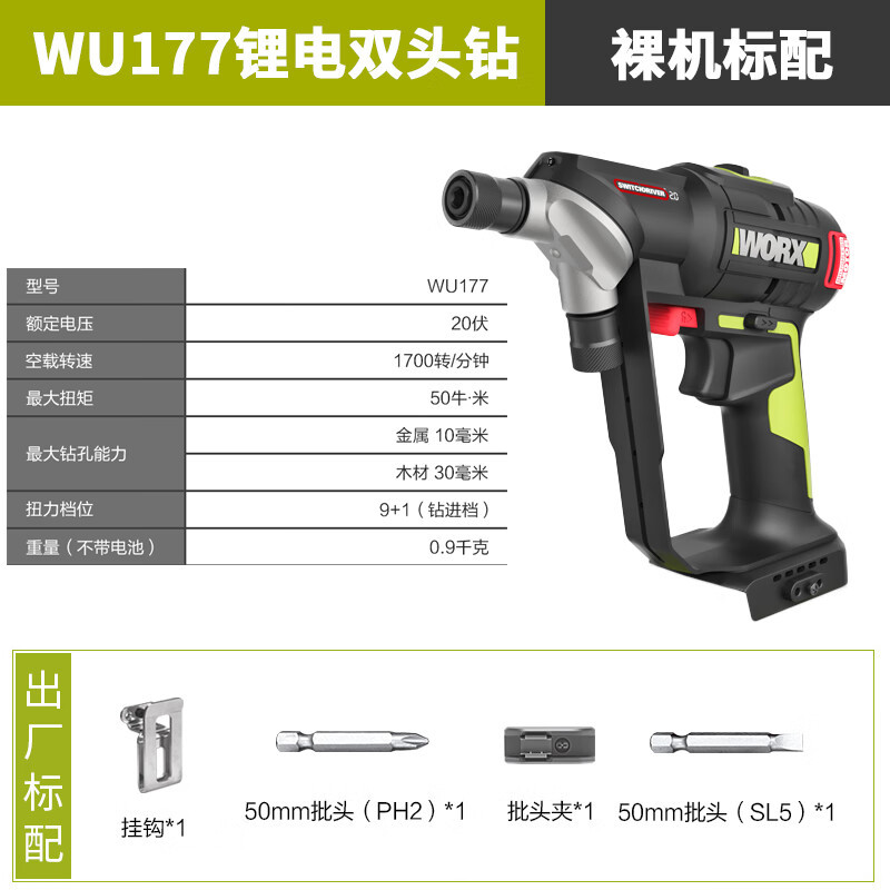 威克士威克士リチウム電気ブラシレスダブルヘッド電気ドリルWU177懐中電灯ドリル家庭用穴あけ多機能電動スクリュー