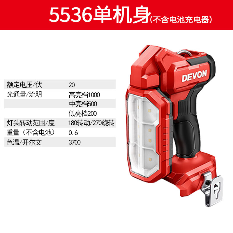 大有(Devon)20vリチウム電気縦型作業灯5537折り畳み回転ヘッド2500ルーメン高亮手持ち