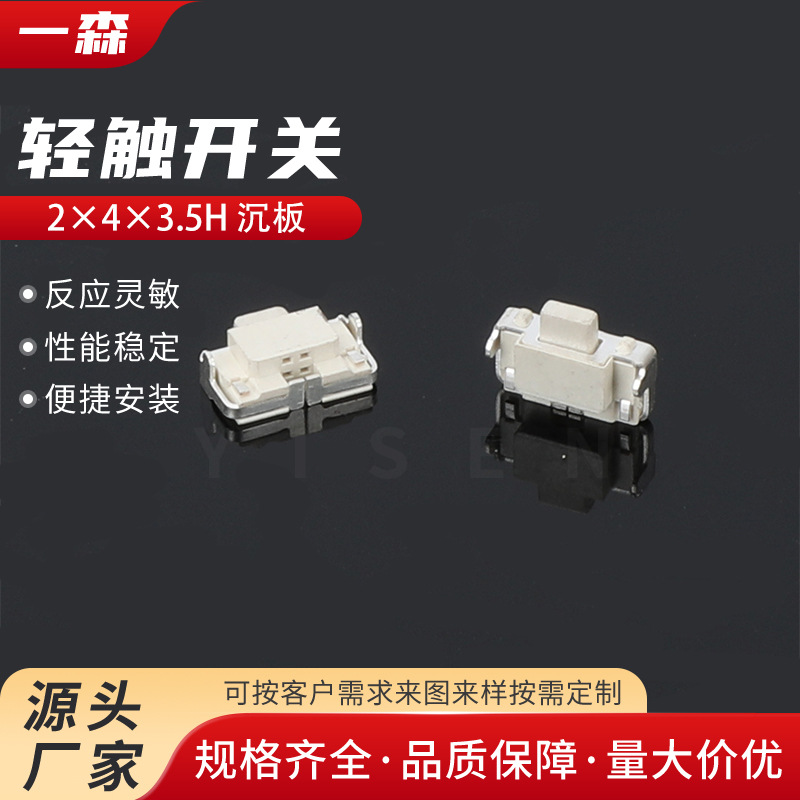 タクトスイッチ 2*4*3.5H シンキングプレート小さなボタンサイドプレスマイクロスイッチボタンスイッチパッチストレートプラグ