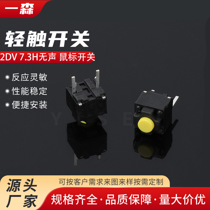 2DV 7.3H サイレントマウススイッチ黄色丸頭マイクロボタンコネクタストレートプラグショートフットタクトスイッチ 6*6