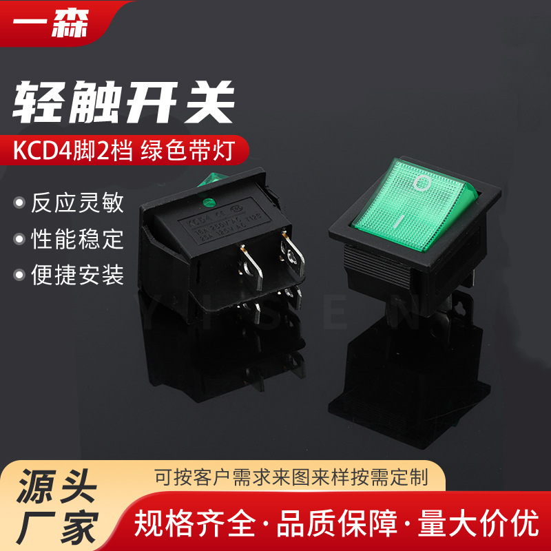 KCD4 4ピン 2速 グリーン ライト付きボート型スイッチ ロッカー電源ボタン 4ピン ライト付き 16A 250V