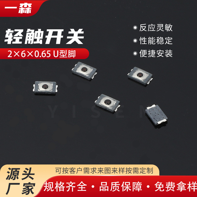 タッチスイッチ 2×3×0.65U型脚 携帯電話ボタン 音量サイドキー Bluetoothヘッドセット マイクロスイッチ 耐衝撃性と耐久性