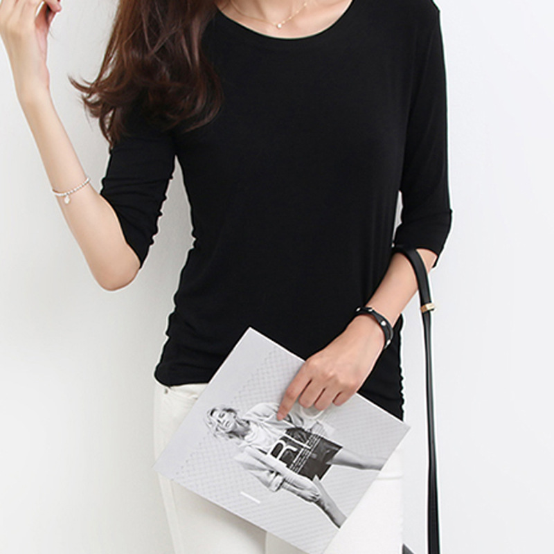 純色の大きいサイズの婦人服の長袖の7分の袖のtシャツのモーダルの手触りの底のシャツの女性の上着の200斤は代行します。