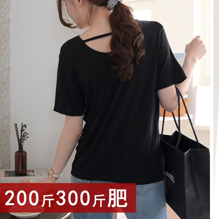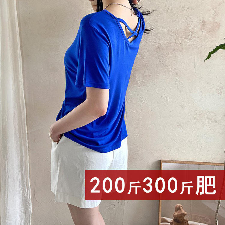 夏の大サイズ女装200斤300斤の太ったモーデールの手触りの後の半袖tシャツの丸首の女性の上着9