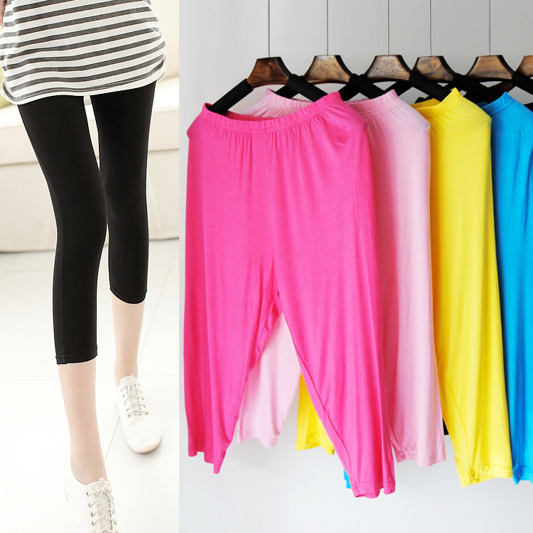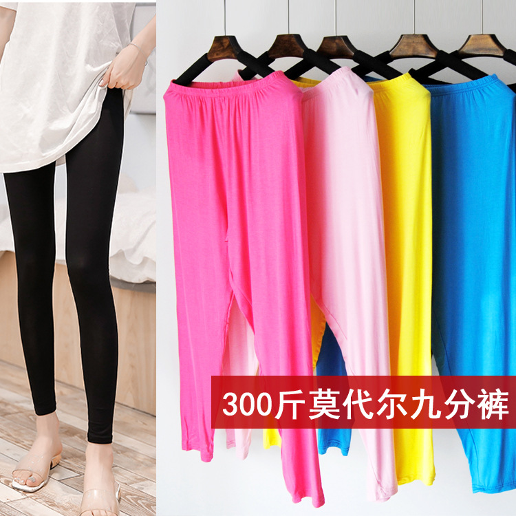 大きいサイズの婦人服の200斤の300斤の7分のレギンスの夏のモーダルの手触りの女性の高い腰のタイツ
