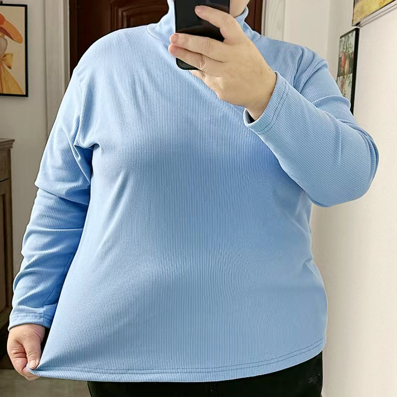 200斤300斤の太いねじの大きいサイズの長袖の底のシャツの弾力性の保温の女性の高襟の秋の下着のtシャツの上着の肥