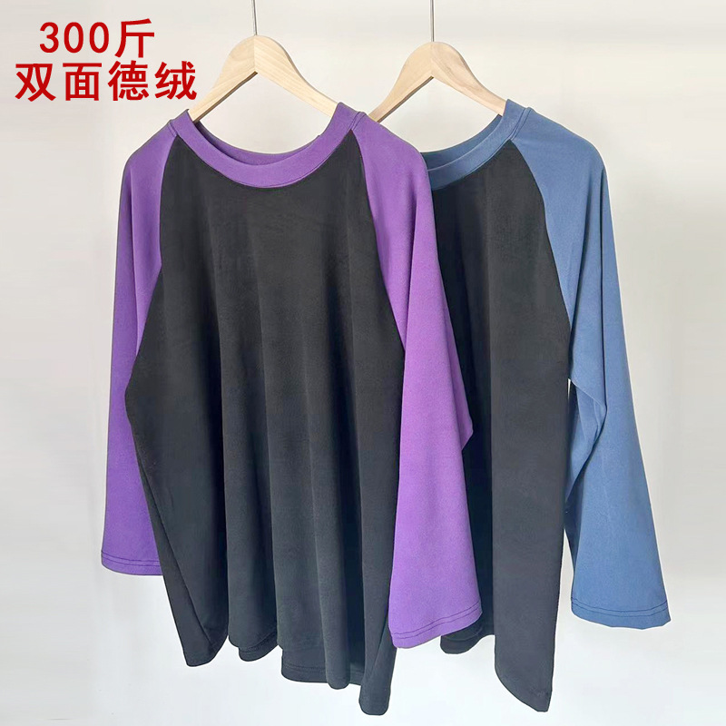 200斤300斤の大サイズの太った女性の両面に厚いベルベットの保温上着を入れて肩の丸首にベルベットのシャツtシャツを着ます