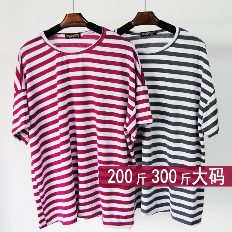 大サイズ女装夏半袖tシャツ200斤300斤太った弾円襟の太い縞がゆるい半袖tシャツ上着6号