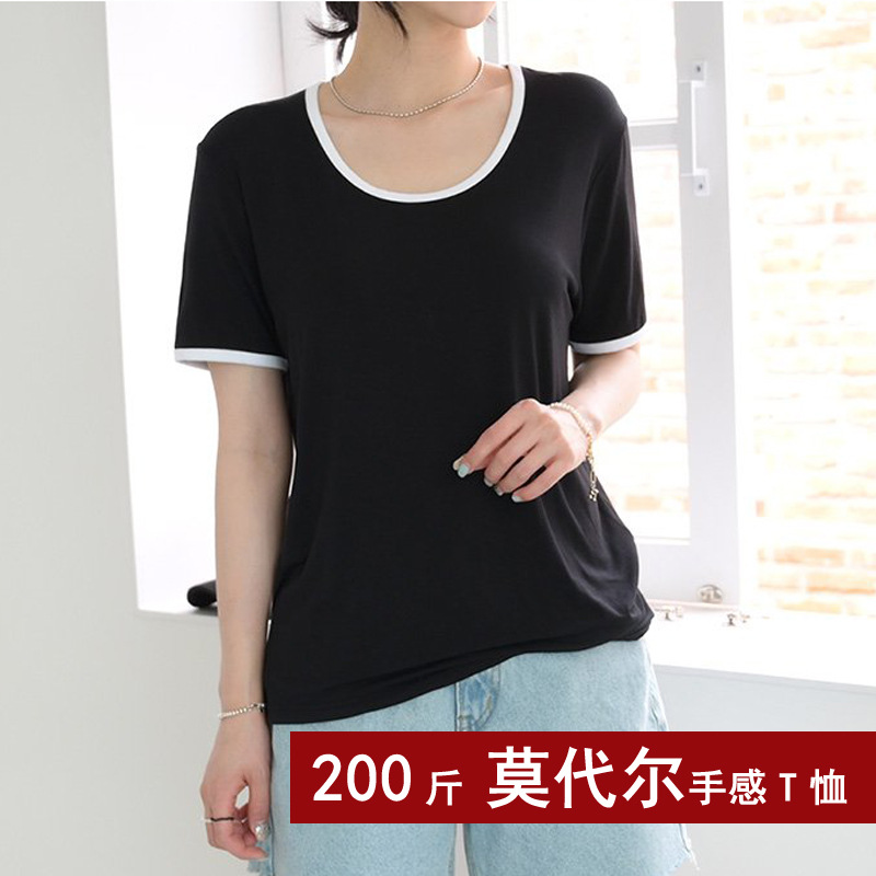 200斤300斤の大きいサイズの婦人服の太ったm肥のモーダルの手触りの半袖の上着は底のtシャツの上着の12を打ちます。