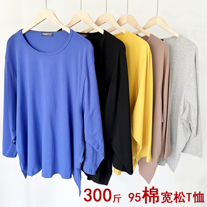 200斤300斤の大きいサイズの婦人服の肥秋春95綿の長袖のゆったりしているフォークのtシャツの底のシャツの上着の太ったm 18
