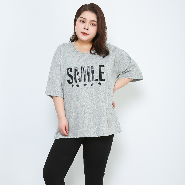 300斤の大きいサイズの婦人服の太ったm綿の印字の半袖のtシャツの半袖の底のシャツの太った上着の灰色の上着