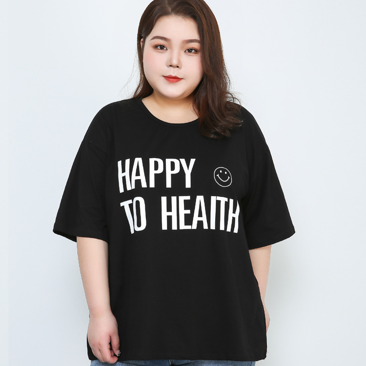 300斤の大きいサイズの婦人服の太ったmmの綿は半袖のtシャツの半袖の底のシャツの太った上着の黒色の200斤を印字します。