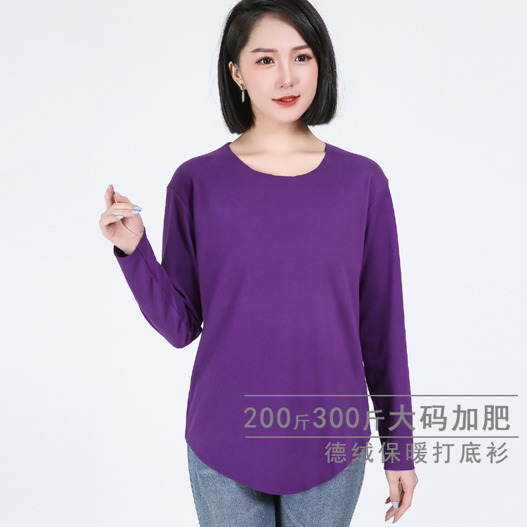 大きいサイズの婦人服の徳deの絨毛の底のシャツは太っているuの底の長袖のtシャツの200斤の300斤の保温の上着の冬をプラスします。