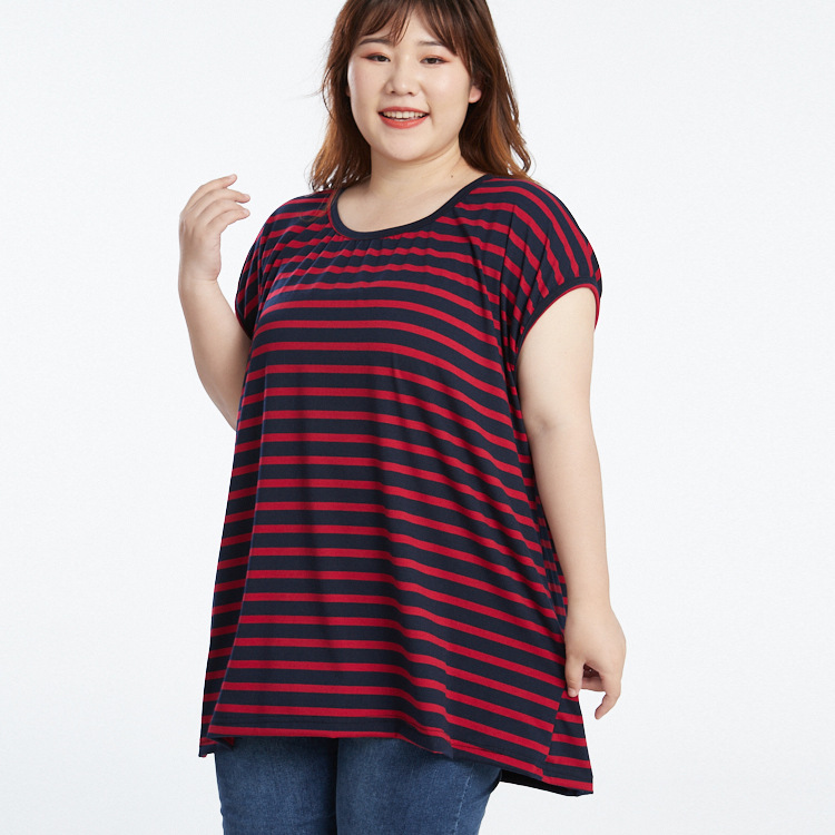 大きいサイズの婦人服の太ったm 200斤の夏の縞の中の長いコウモリの短いtシャツの袖のシャツの肥えた家の服