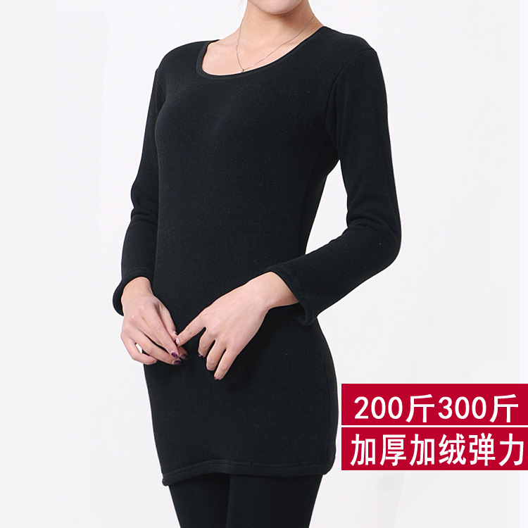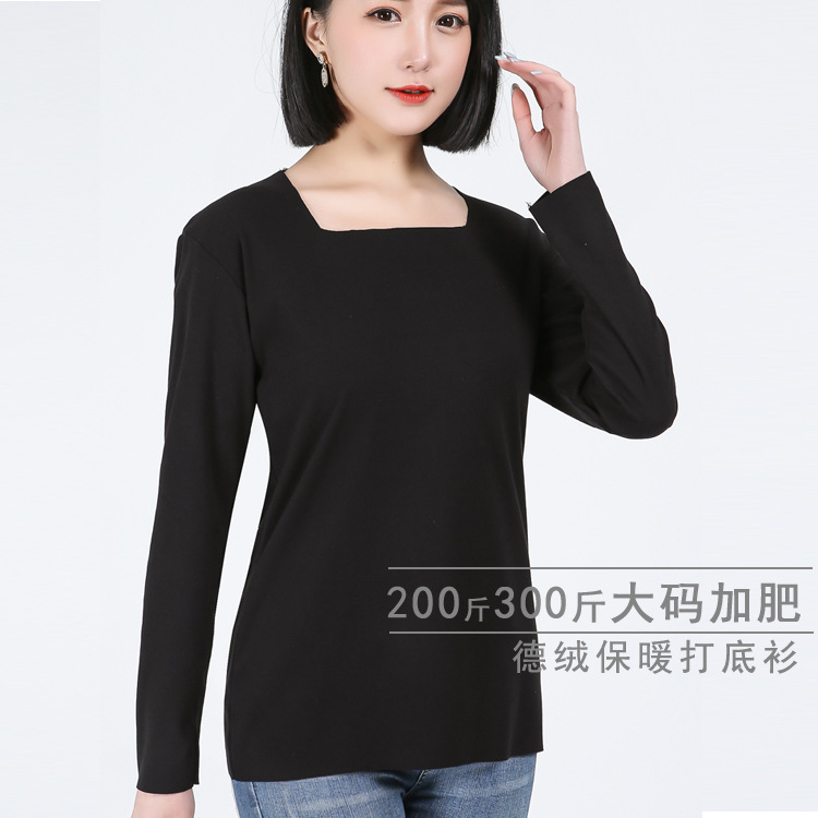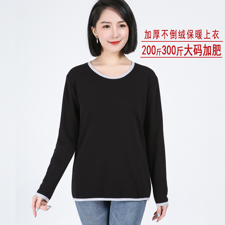 大きいサイズの婦人服の200斤の300斤の保温の上着の冬の新型のde徳の絨毛のu襟の底のシャツの保温の長袖のtシャツ