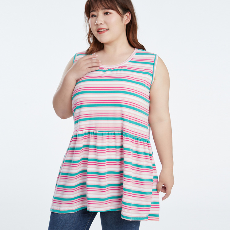 200斤300斤の大きいサイズの婦人服の太ったmメリヤスのストライプのベストスカートはサスペンダーのスカートのベストスカートをつなぎ合わせます。