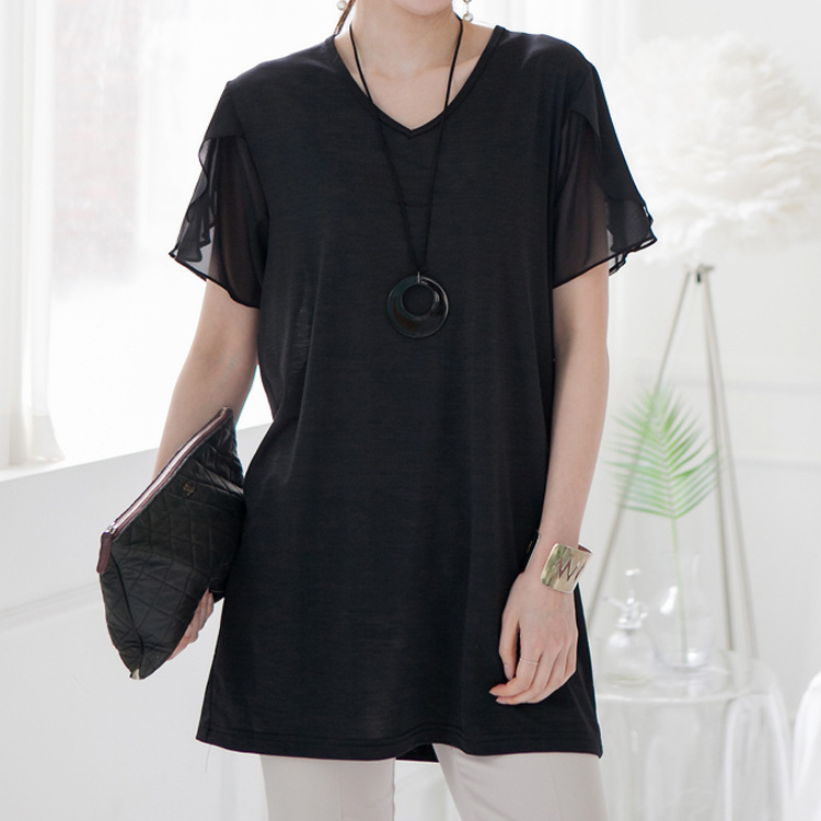 大きいサイズの婦人服の上着の200斤の300斤の新型のシフォンのモーダルの手触りのvネックの半袖のtシャツの底のシャツの太ったm