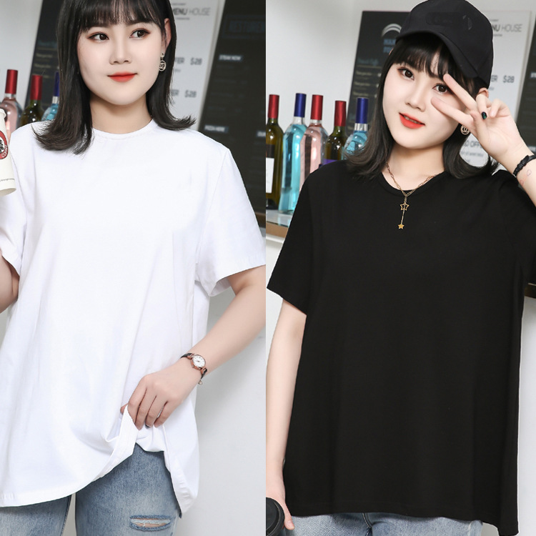 200斤300斤大サイズ女装精綿引き架弾力半袖丸襟tシャツ文化シャツ