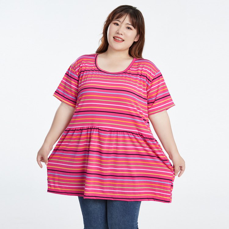 大サイズ女装200斤300斤太ったm肥縞ニット半袖tシャツのスカートルーム服