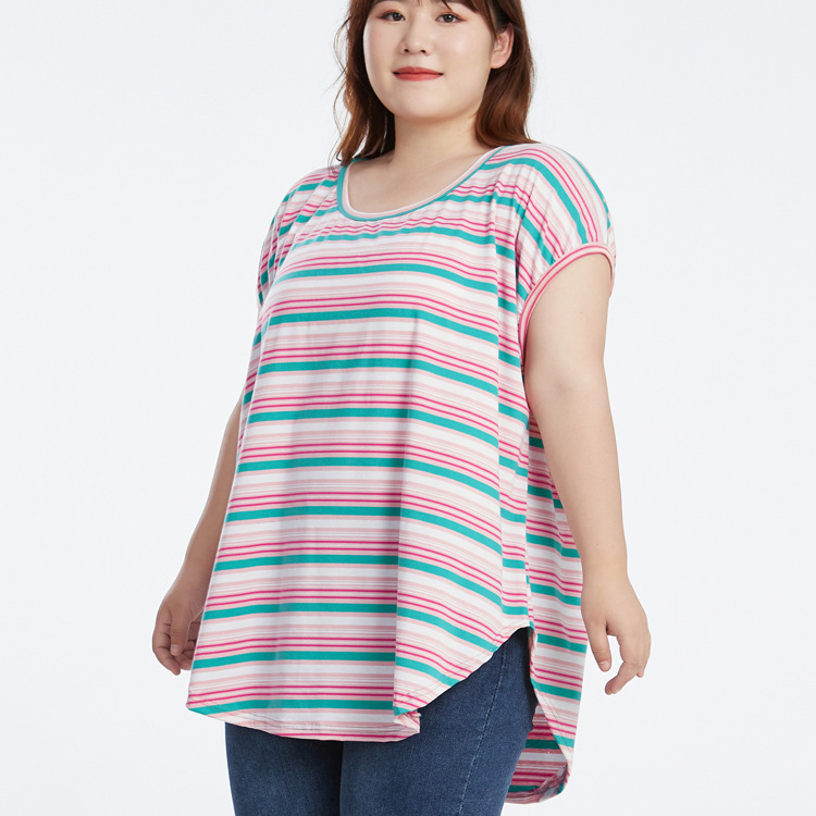 大きいサイズの婦人服の太ったm 200斤の夏の縞のコウモリの半袖のシャツのtシャツの部屋の服の太った上着