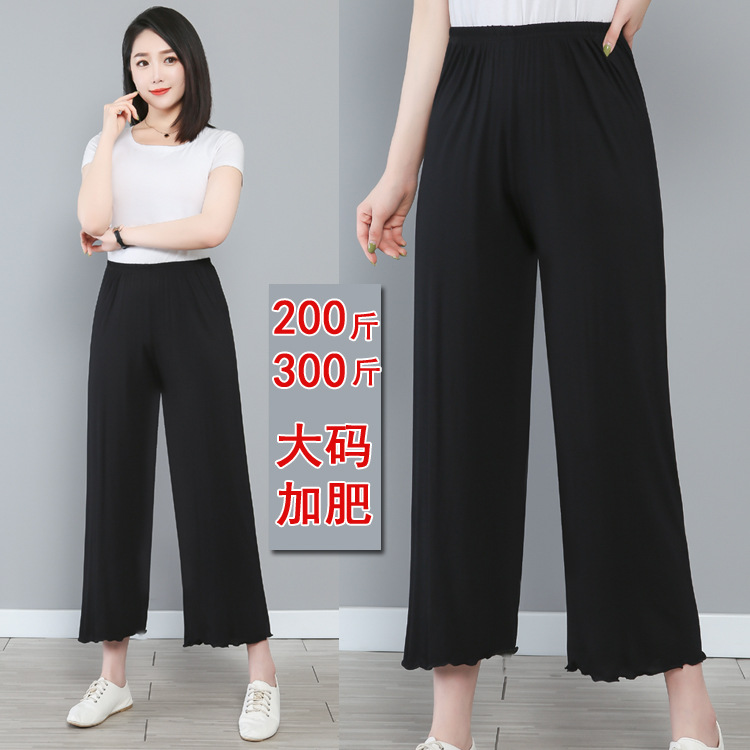 200斤の大きいサイズのモーダルの手触りの女性の長い睡眠のズボンの広い足のズボンの震えのズボンのゆったりしている高腰の家庭の運動のヨガのズボン