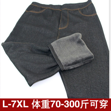 ベルベットの厚いレギンスのデニムの偽の2つの大きいサイズと太ったmmの女性のズボンのスカートのL-6XL