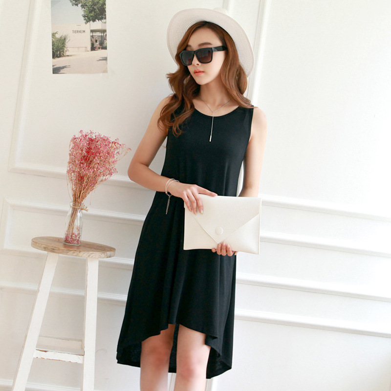 夏の韓国版のゆったりした大きいサイズの婦人服のワンピースの家庭服の中の長いタイプのファッション的なベストのスカートは肥えています。