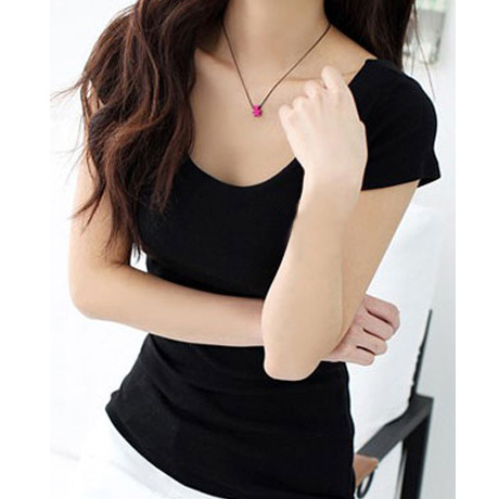 大きいサイズの卸売りの夏の綿のuの大きい方の襟の半袖の女性のtシャツの中で長い純色の底のシャツの半袖