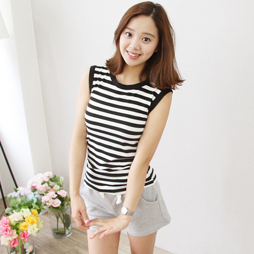 200斤の太った夏のモデルの新しい太ったmmの女性の大きいサイズのストライプの底のシャツの横の間の小さいキャミソールの女性