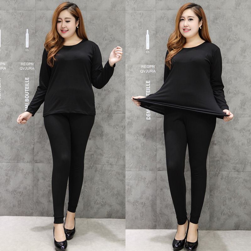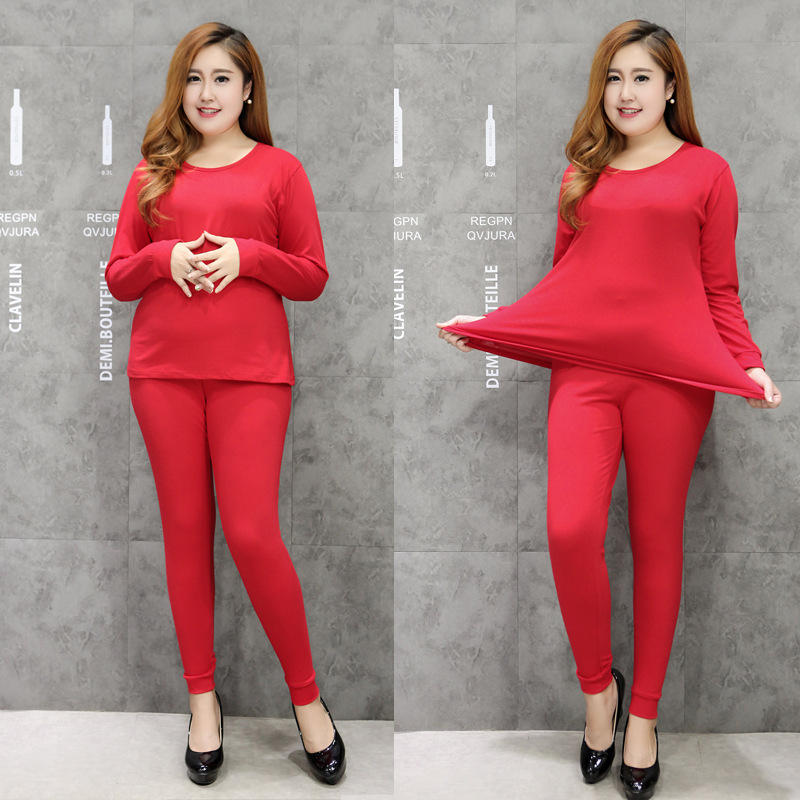 200斤の太ったm綿の棚と太った大きいサイズの秋の服の秋のズボンの女性の秋冬の薄いタイプの底を打つ保温の下着のスーツ