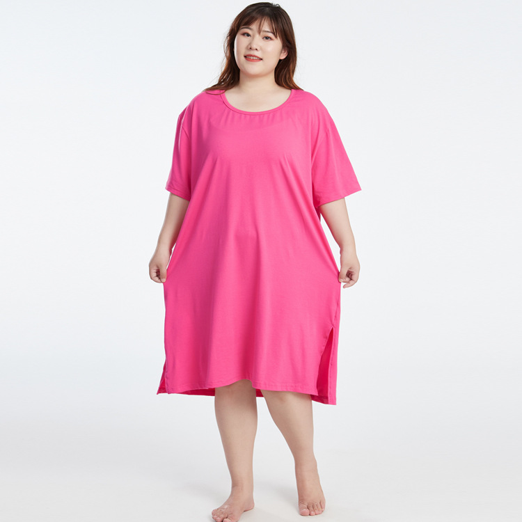 200斤300斤の大きいサイズの婦人服の太ったm綿は膝の半袖の長いスカートのtシャツのスカートの家の睡眠のスカートの家の部屋の服を越えます。