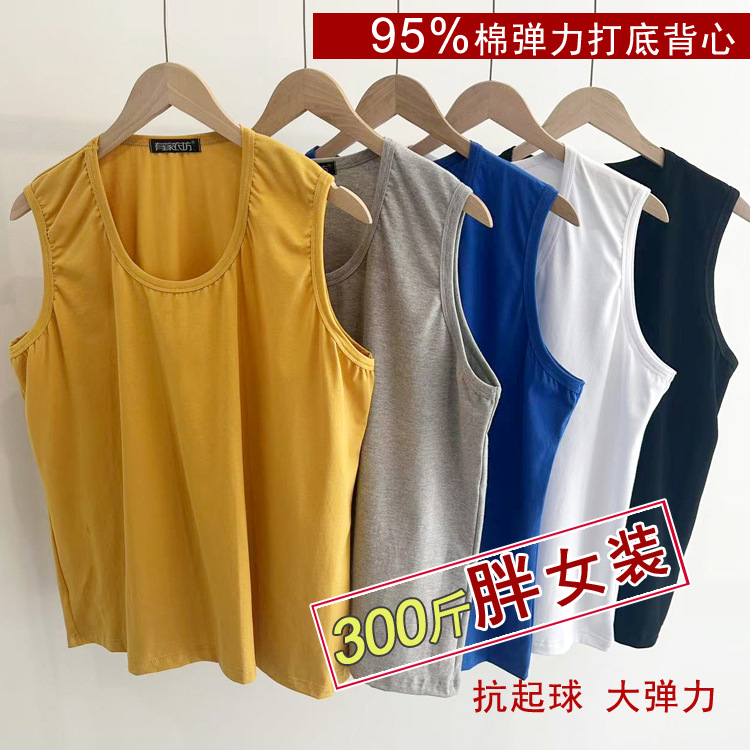200斤 150kg 大きいサイズの婦人服 綿95% ワイドショルダー ノースリーブ 無地 ベスト 肥満 m ストレッチボトムシャツ トップス