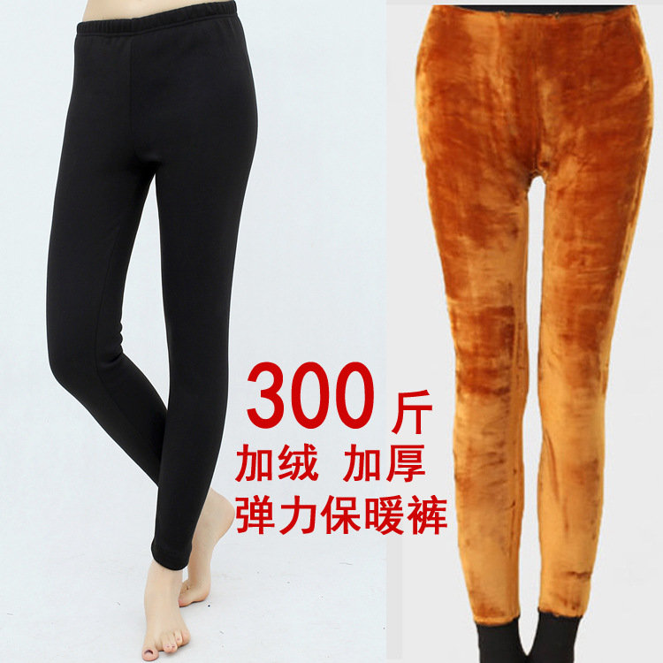 200斤300斤の大きいサイズの婦人服の冬のベルベットはズボンの外に女性の冬の腰の高い弾力性の女性のズボンを着ている