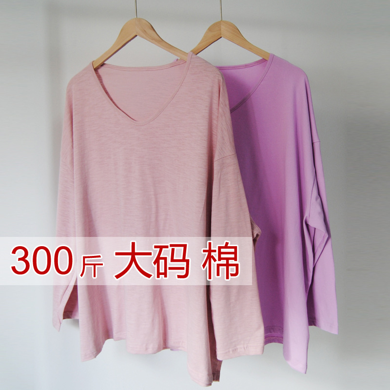 大サイズ春装新200 300斤女装95綿長袖ゆるいtシャツ上着太ったm長型太ったシャツvネック