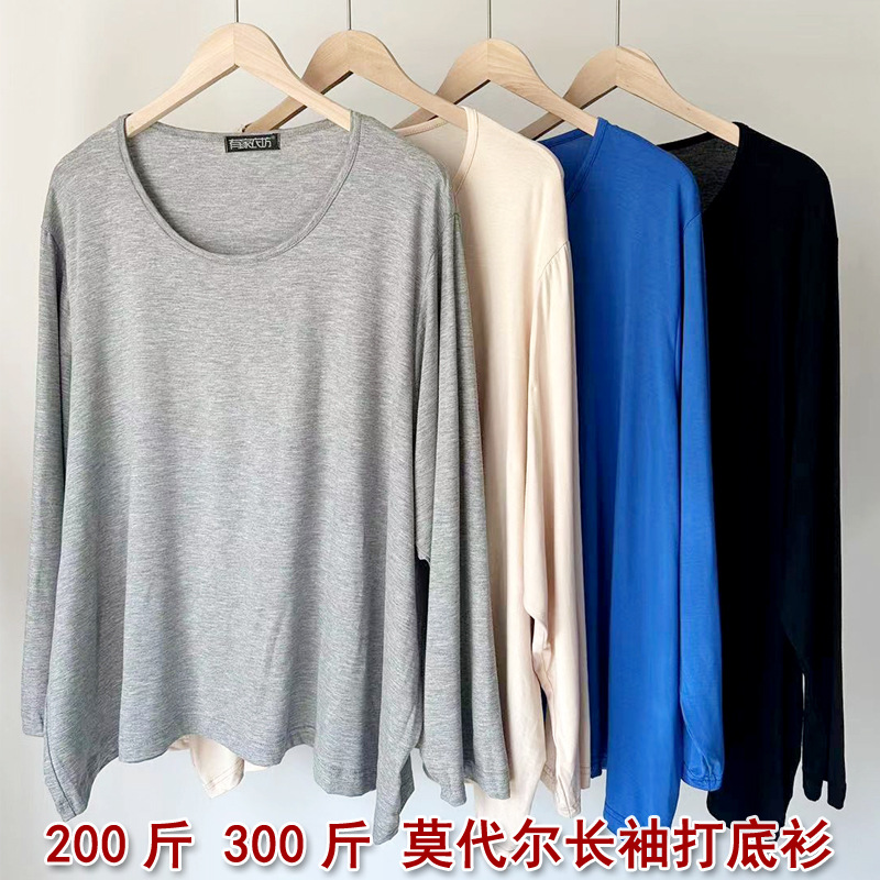 モーデール手触り秋のシャツ200斤300斤の新しい長袖tシャツの大きいサイズの婦人服のゆるい秋の上着
