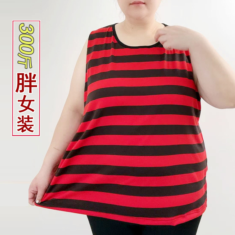 200斤の加肥春夏ストラップの細い縞のベストの女性の大きいサイズの女性の300斤の綿の弾力のベストは代行します。
