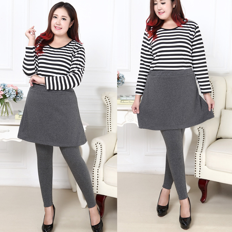 偽の2枚の外着女200斤300斤のベルベットが腰を厚くして3尺4尺の保温太った女性のズボンのスカートを厚くした