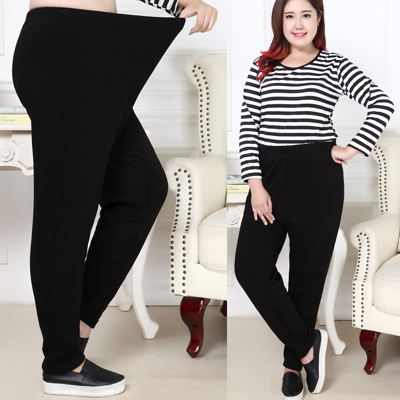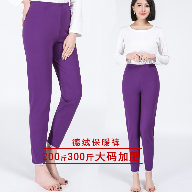 大サイズ女装200斤300斤秋冬新加肥高腰不倒毛保暖ズボン増厚代発