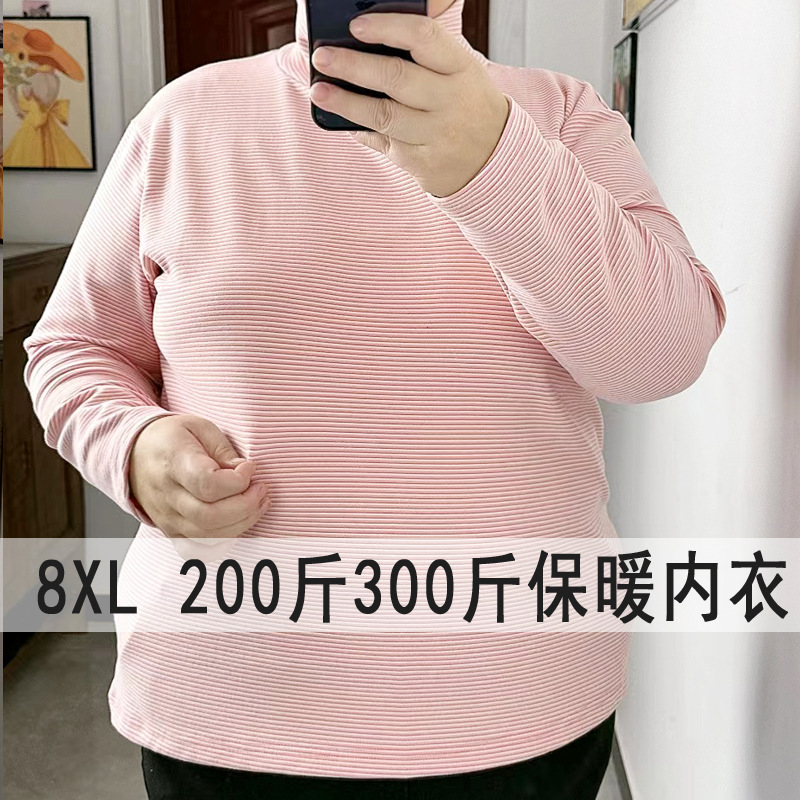太った女性のベルベットは、大きなサイズの保温下着300斤の高襟長袖のシャツ秋冬deベルベットの上着を厚くした