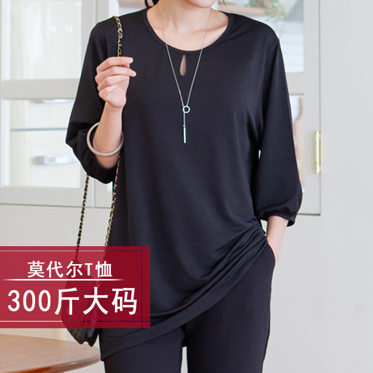新サイズ女装200斤300斤モーデール手触り七分袖丸首長袖tシャツ2215