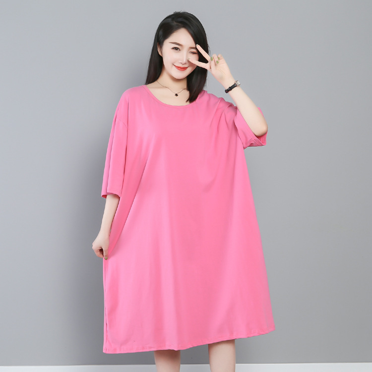 夏の新型の大きいサイズの女性の綿の眠るスカートの200斤の300斤は肥えた中の長い半袖のパジャマのワンピースの家の服をプラスします。
