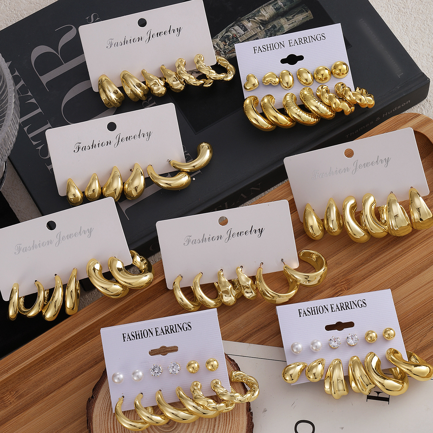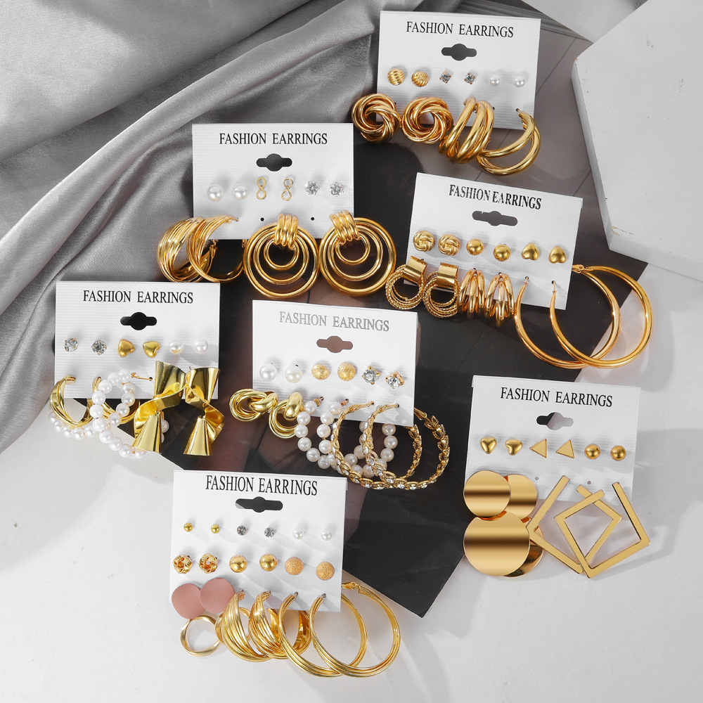 10ペアのイヤリングの組み合わせは誇張しています。