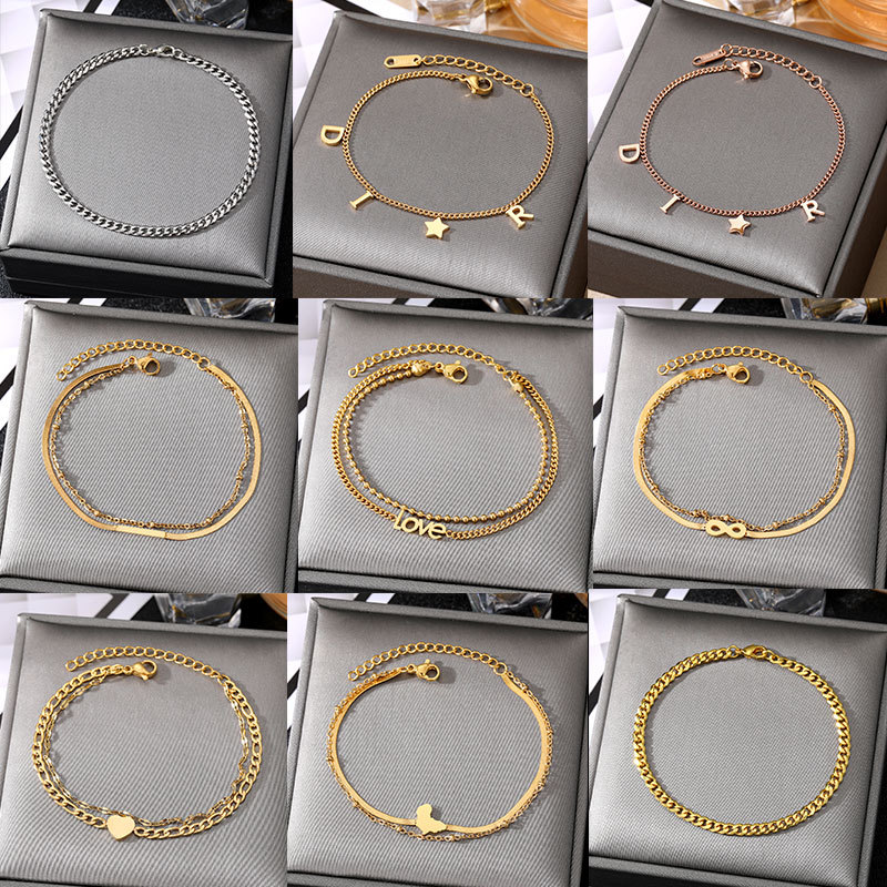 ステンレスのブレスレットの女性の2層の金の玉のツイストチェーンの刃のチェーンの細い蛇の骨のチェーンの地図の五角の星のアクセサリー