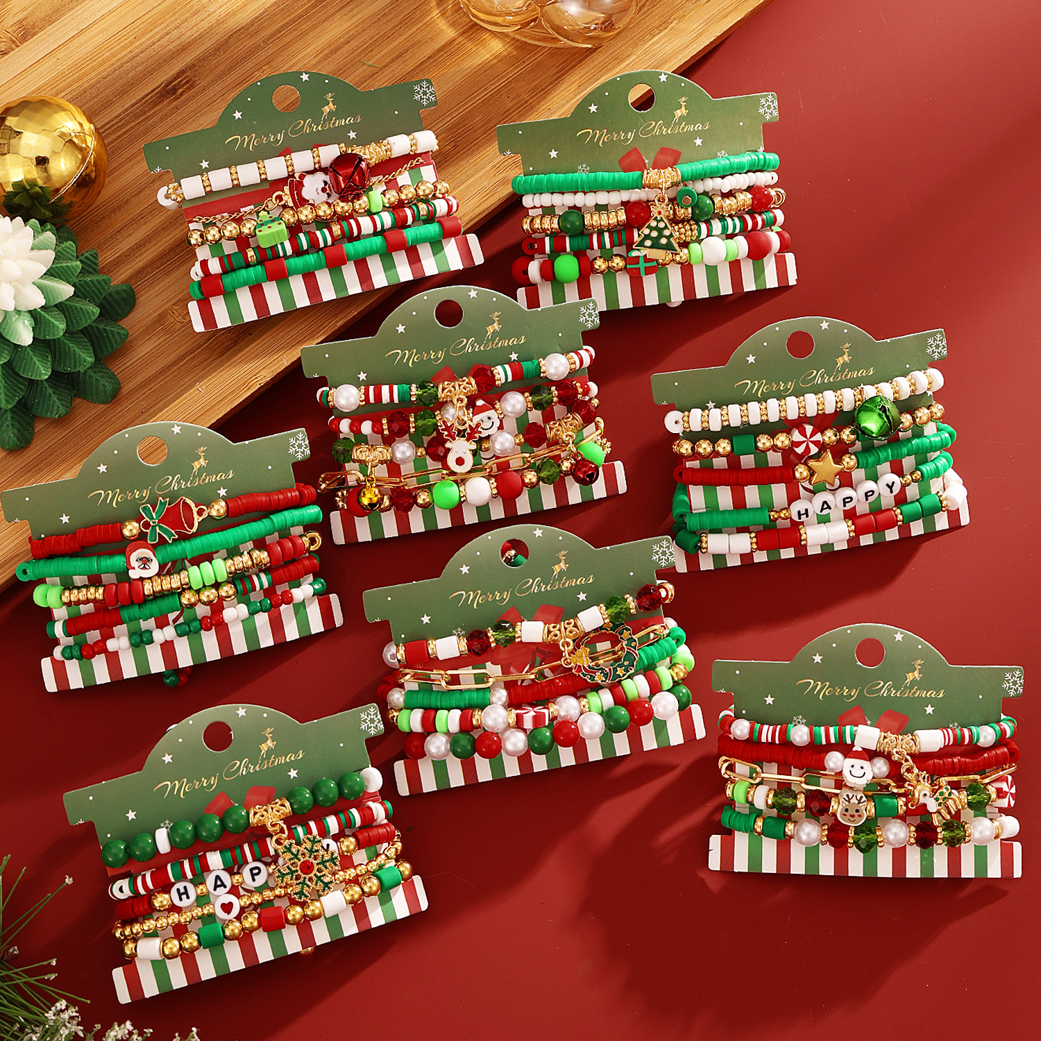 2024新型クリスマスアクセサリーファッション軟陶模造真珠ビーズ花輪鹿頭ペンダント弾力多層ブレスレット女