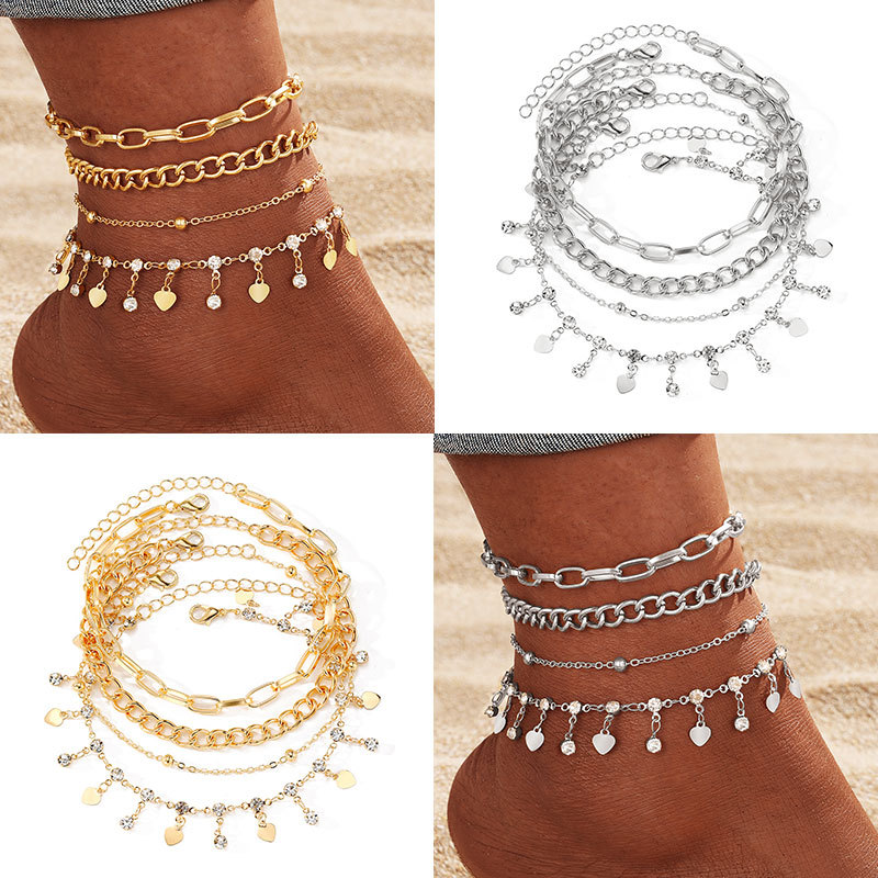 白k/金色の愛のダイヤモンドペンダント金珠脚チェーン4点セットアマゾンの起爆ビーチ脚アクセサリー